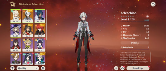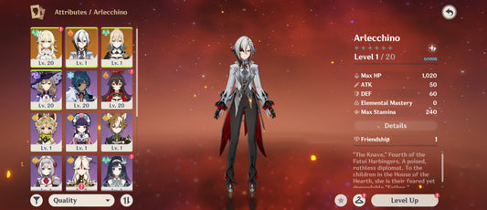 [Nivel 53] 235 Deseos 💎 | Arlecchino + Arma #1 | Genshin Impact Cuenta Reroll