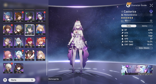 TL 65 SERVER AMERICA⭐️Castorice + Cono , Lingsha + Cono , Feixiao + Cono , Robin + Cono , Phainon + Kafka + Black Swan + Ruan Mei + Luocha + Archer + Bronya E1 + Himeko E1 + Yanqing