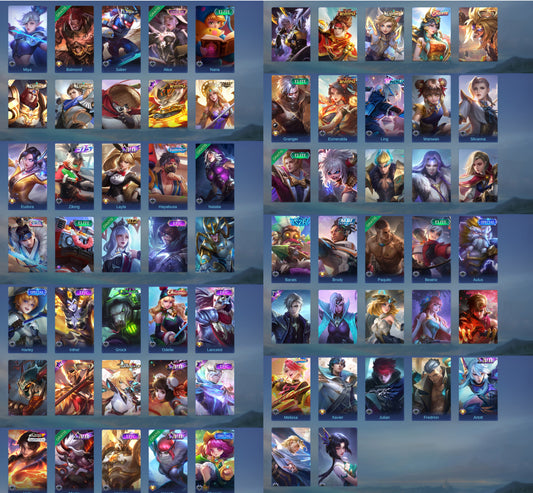 Mobile Legends| 67 HÉROES + 88 SKINS | LUCKYBOX: Alice⭐, Eudora⭐, COLLECTOR Natalia + 6 EPIC⭐VALENTINE CLAUDE , SABER +3