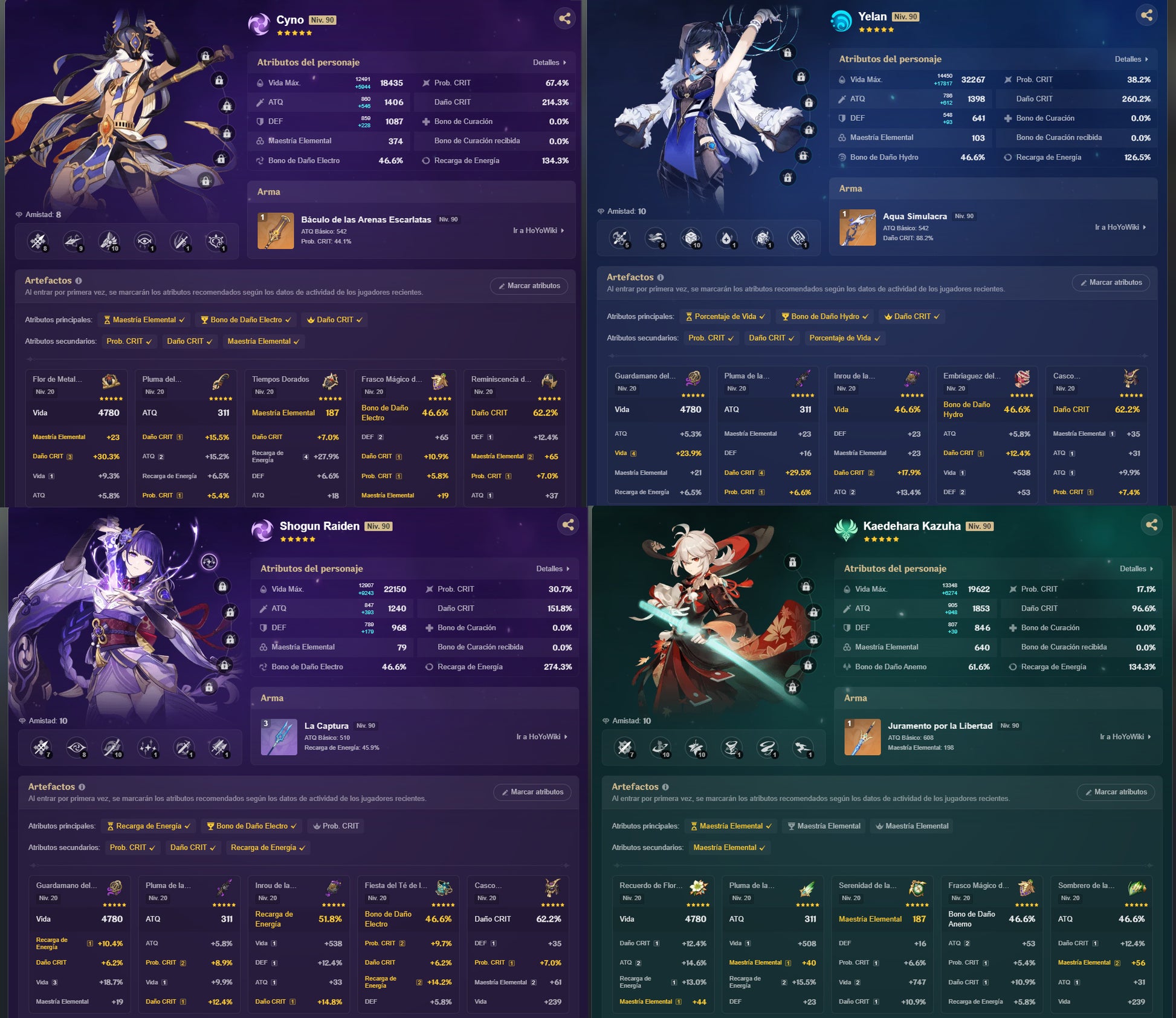 [AR 59] ✨ Kazuha + Zhong Li + Furina + Neuvillette + Xiao + Ganyu + Ayaka + Cyno + Shogun C1 + Yelan + Tartaglia + Arlecchino + Hu Tao C1 + Albedo + Venti + Baizhu C1 + Wanderer