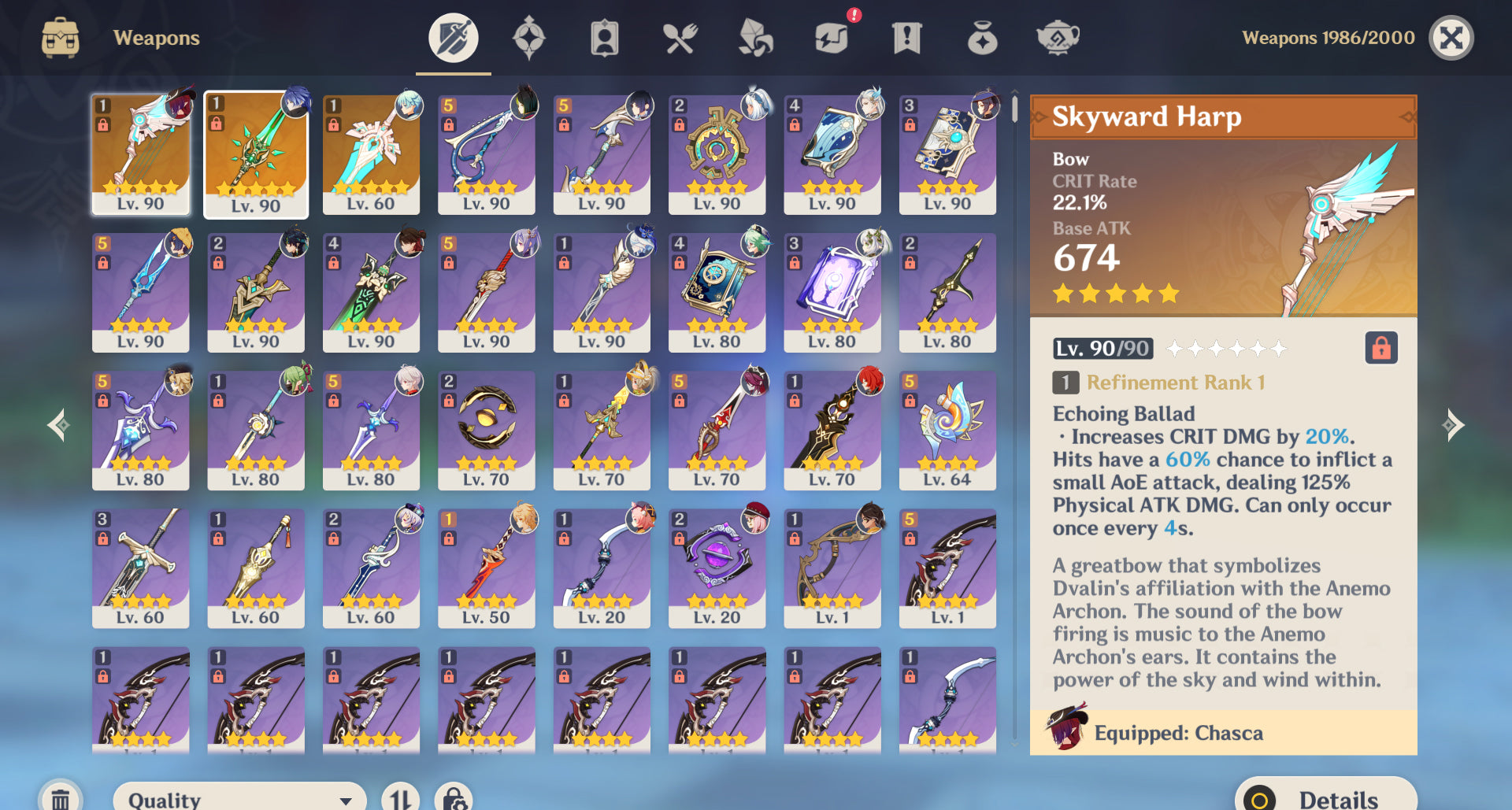 [AR 59] ⭐️ Flins + Neuvillette + Furina C1 + Kinich + Navia + Chasca + Yelan + Mualani + Nahida + Kazuha + Venti — Cuenta Genshin Impact