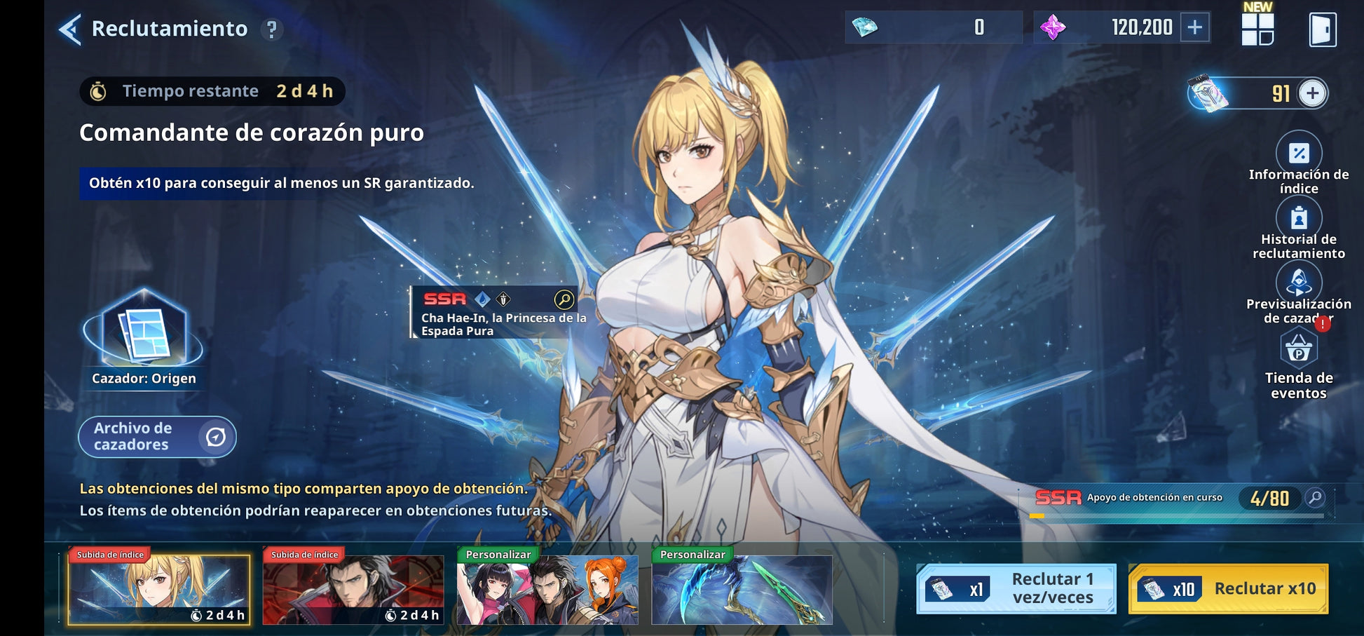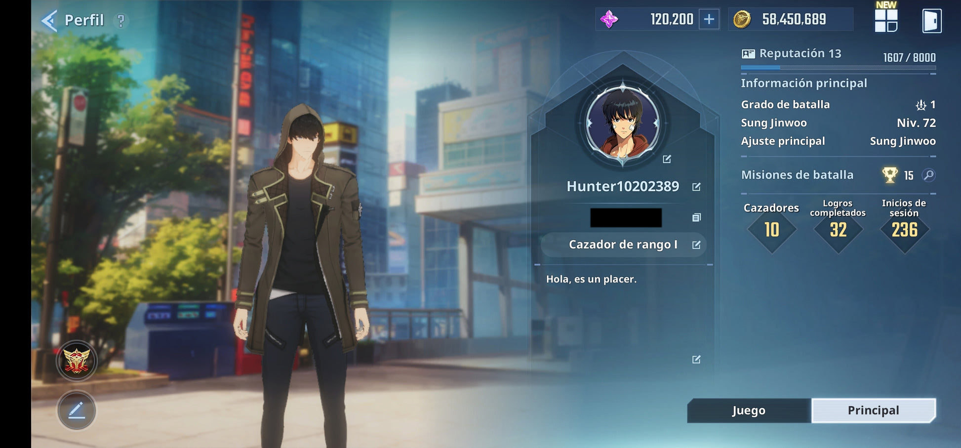 [Global] Nivel 72| +120,200 Piedras esenciales 💎+ 91 Tickets especiales , +760 Tickets personalizados |Cha Hae-In (Nueva) , Woo Jinchul + Arma exclusiva , Go Gunhee |Solo Leveling:ARISE Cuenta inicial reroll
