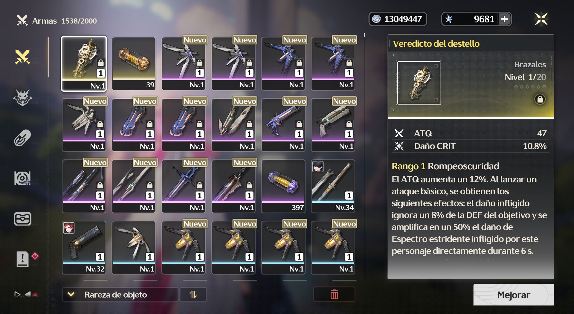 [Nivel 38]✔️Cumpleaños libre | 9681 Astritas💎 + 26 Mareas radiantes💎⭐️Zani + Arma + Carlotta + Veritas + Calcharo + Jianxin | Wuthering Waves Cuenta reroll