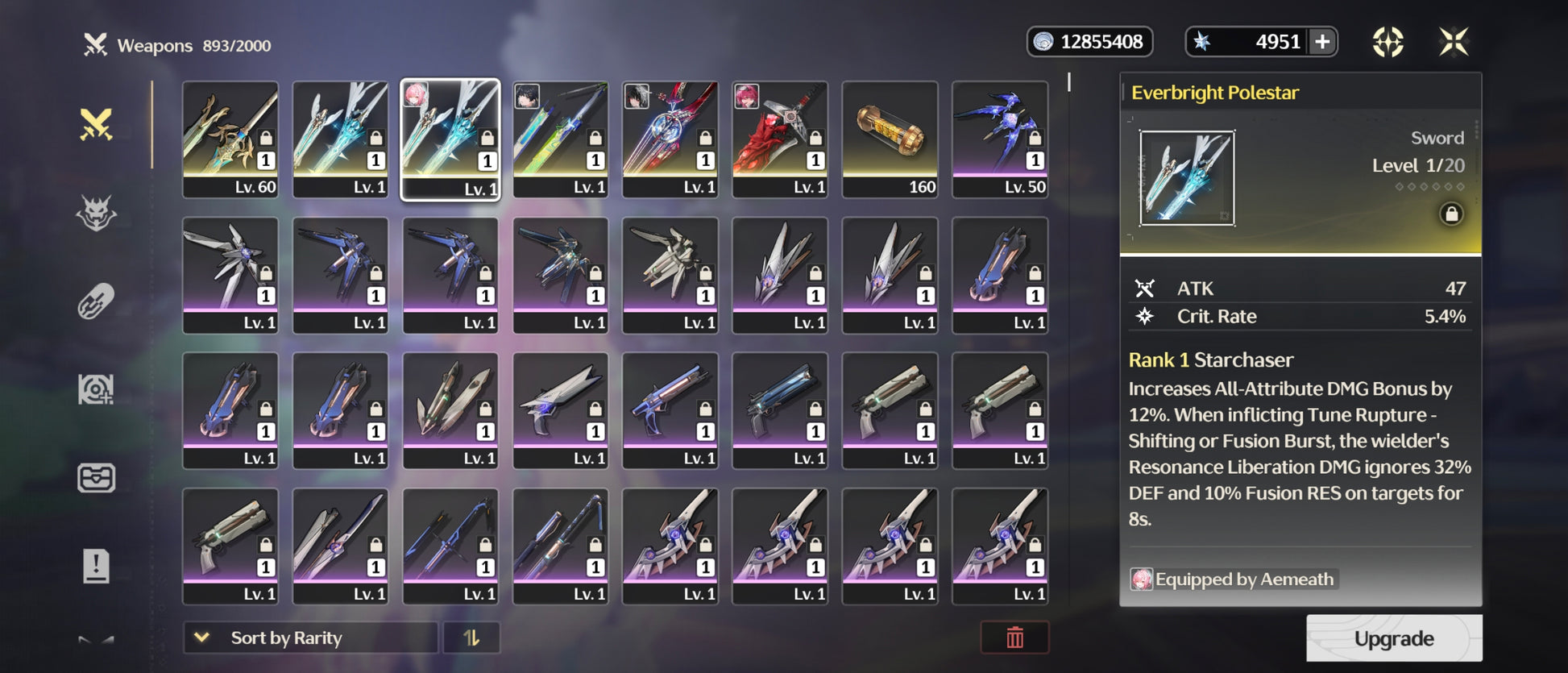 [Nivel 40+] 4,951 Astritas 💎+ Aemeath + Arma + Chisa + Arma + Lupa + Arma + Mornye