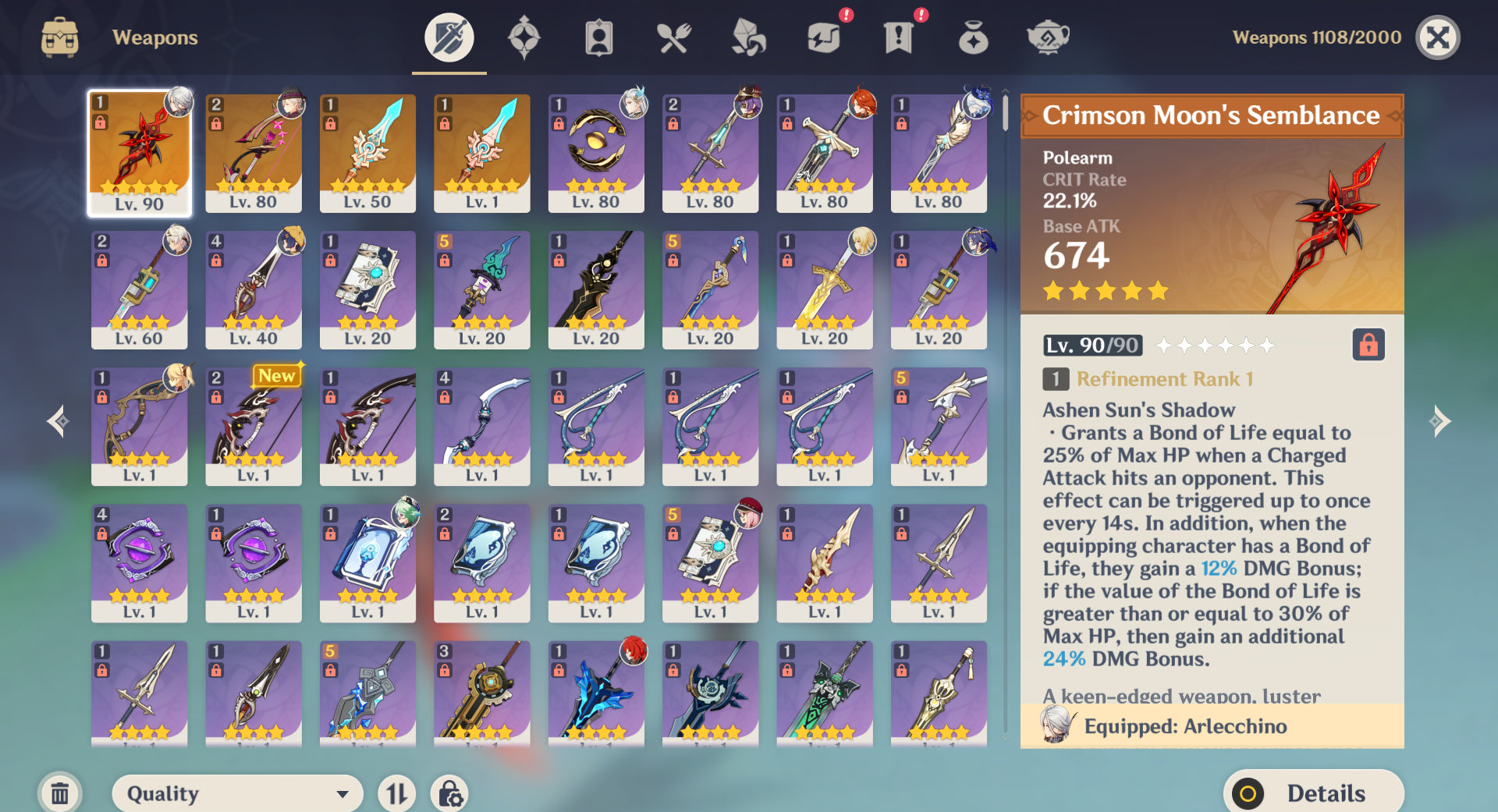 [Nivel 56] Arlecchino C2 + Arma , Mavuika , Lyney C1 + Arma , Furina , Neuvillete C1 + Jean C1, Qiqi , Diluc , Mizuki