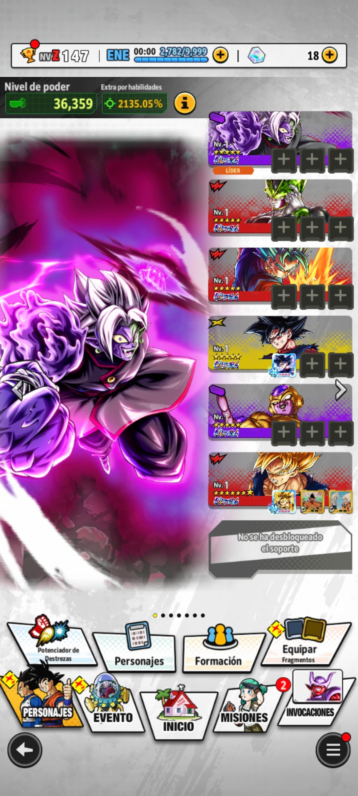[Solo Android] ⭐️ 5 PERSONAJES ULTRA — SS Dios SS Vegetto + Pre-Ultra Instinto Goku + Golden Freezer + Cell Perfecto + Mitad Corrupto Zamasu fusionado + 21 Legends Limited